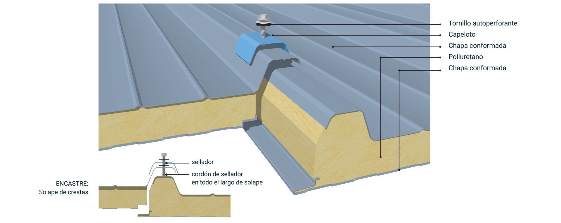 › Aplicaciones en fachadas, cubiertas, cielorrasos, divisiones interiores, etc.